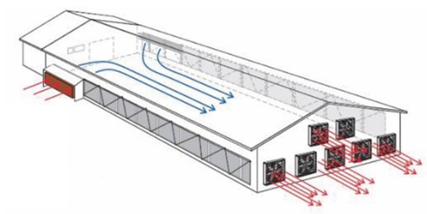 การระบายอากาศออกจากพื้นที่นั้น จะต้องใช้หลักการโดยการดึงอากาศร้อนออก และเติมลมใหม่ (ลมปกติ) เข้าไปในอาคาร เพื่อทำให้อาคารมีสภาพอากาศที่เย็นขึ้น ซึ่งโดยปกติเมื่ออากาศมีอุณหภูมิสูงขึ้นก็จะลอยตัวขึ้นด้านบน ดังนั้น การประยุกต์ใช้องค์ความรู้ในการระบายอากาศออกจากพื้นที่ คือ การติดตั้งพัดลมฟาร์มอุตสาหกรรม หรือพัดลมหลังคาติดมอเตอร์ที่บริเวณด้านบนของอาคาร เพื่อดึงอากาศทีร้อนออกจากพื้นที่ และนำอากาศใหม่ (ลมปกติ) เข้ามาเติม เพื่อให้เกิดการไหลเวียนของอากาศ และทำให้พื้นที่นั้นมีการไหลเวียนของอากาศ และส่งผลให้รู้สึกเย็นขึ้น หลักการระบายอากาศที่ต้องมีทั้งทางเข้าของลมใหม่ และทางออกของลมร้อน