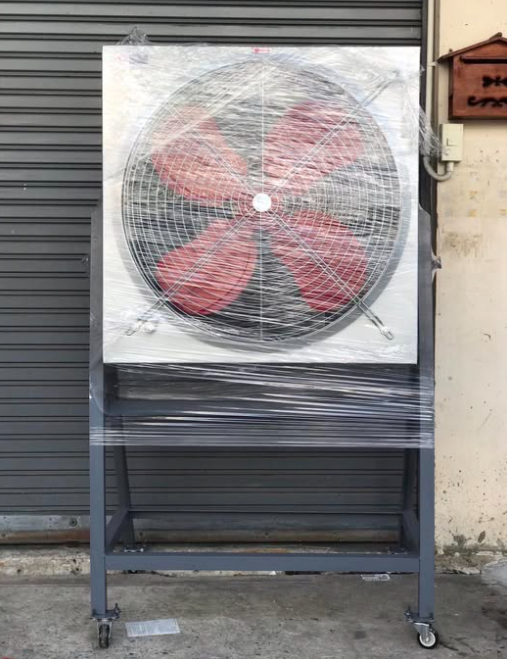 พัดลมอุตสาหกรรมใบแดง ขนาด 30 นิ้ว แบบมีขาตั้งล้อเลื่อน จัดส่งถึงโรงงานเรียบร้อย 0957142888 บริษัทเคพีเอ็มเวนทิเลชั่นจำกัด